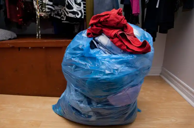 Genbrugeligt tøj og sko bør gives videre, sælges eller doneres i en tøjcontainer.