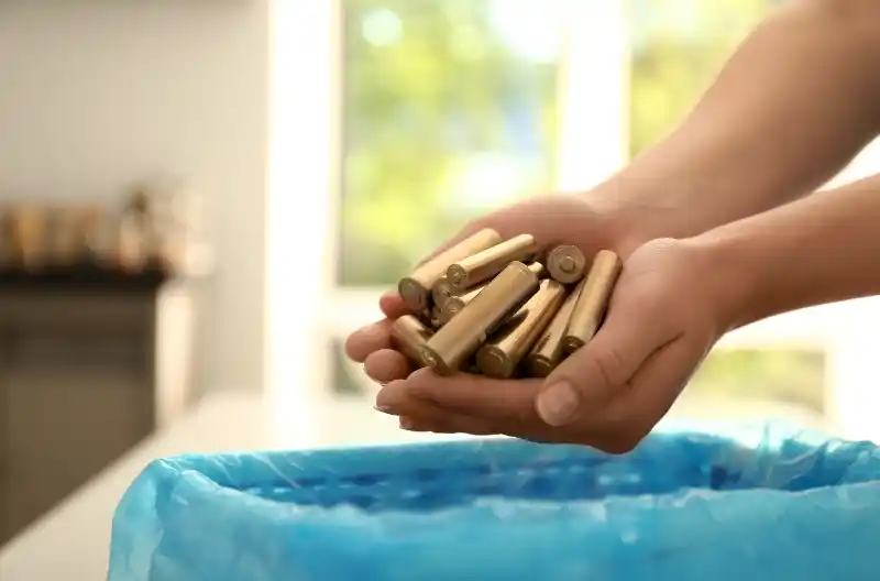 Alle typer batterier afleveres i særlige batteribeholdere eller i udvalgte butikker. Batterier indeholder farlige kemikalier, der kan forårsage miljøskader, hvis de ikke sorteres korrekt.