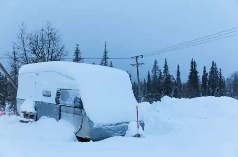Det er en god idé at kontrollere campingvognen hver 4.-6. uge for fugt, skimmel og eventuelle skader. Tjek også, at presenningen sidder korrekt, og at batteriet er opladet.
