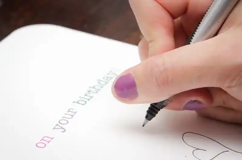 Brug humor, der passer til modtageren, f.eks. “Tillykke! Du er nu et år tættere på pensionist-rabatterne.”