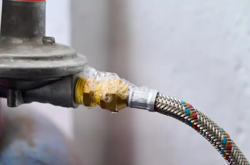 Du kan tjekke gasforbindelser for utætheder ved at påføre sæbevand på rørene. Hvis der dannes bobler, er der sandsynligvis en lækage, og du bør straks lukke for gasforsyningen og kontakte en professionel.
