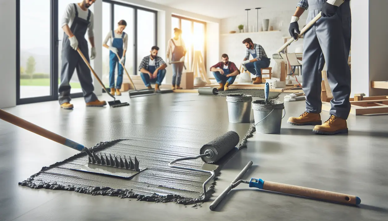 Svar: Selvnivellering af gulv udføres ved grundig rengøring og forberedelse af underlaget, påføring af primer, blanding og hurtig udlægning af selvnivellerende spartelmasse, efterfulgt af brug af pigrulle til at fjerne luftbobler og korrekt hærdningstid på 24-48 timer.