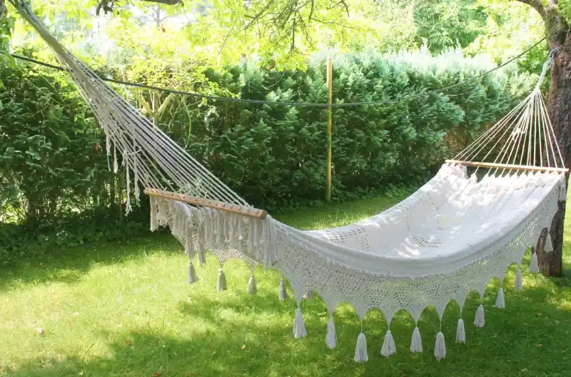 De mest holdbare hængekøjer er lavet af vejrbestandige materialer som sejldug eller polyester.