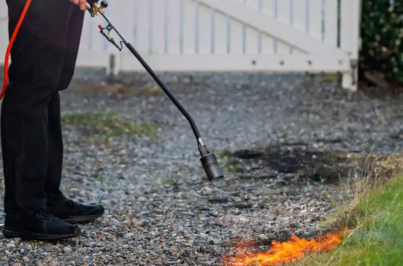 For at minimere risikoen for skader på naboplanter kan du bruge en beskyttelsesskærm på ukrudtsbrænderen og være ekstra forsigtig ved kanten af plantebælter eller andre følsomme områder.