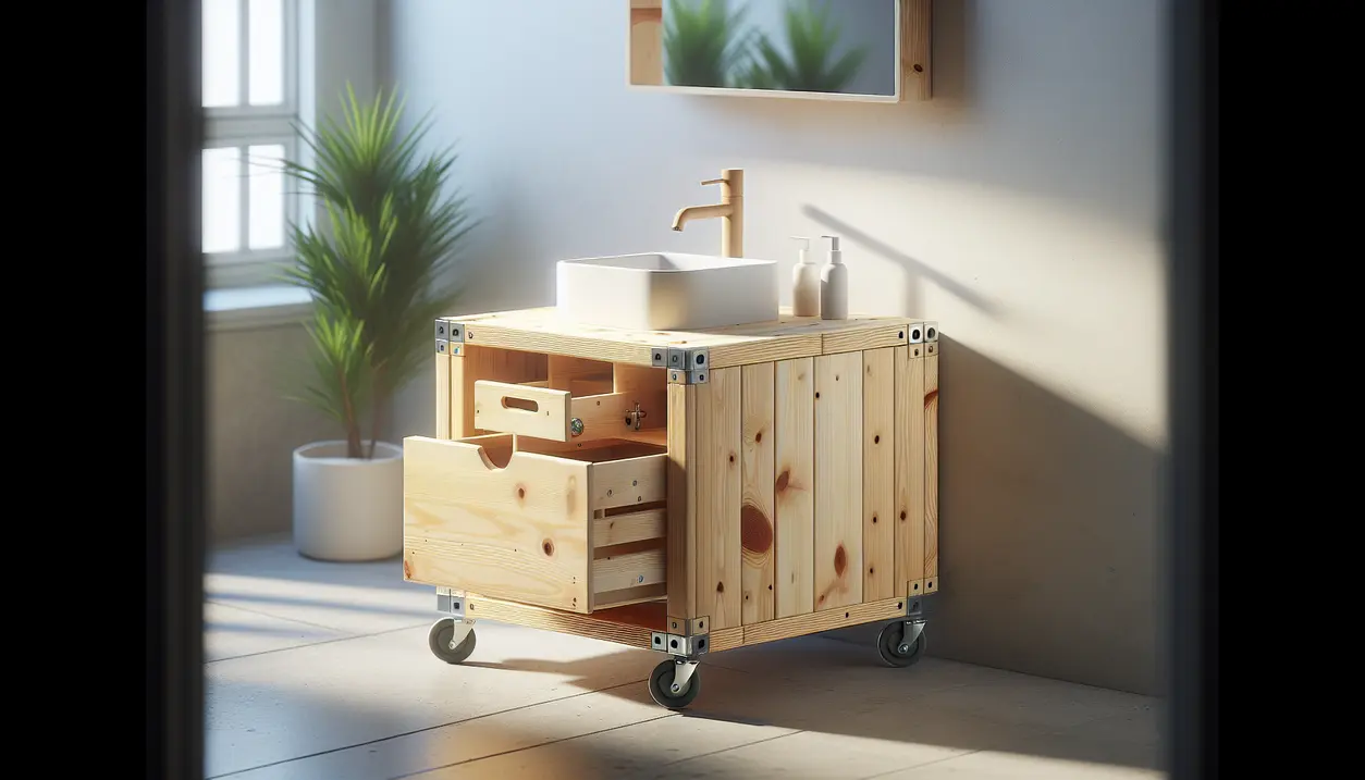 Bekväm-køkkenvognen er oprindeligt designet som mobilt køkkenopbevaring, men dens solide trækonstruktion og praktiske størrelse gør den ideel til at ombygge til badeværelsesbrug.