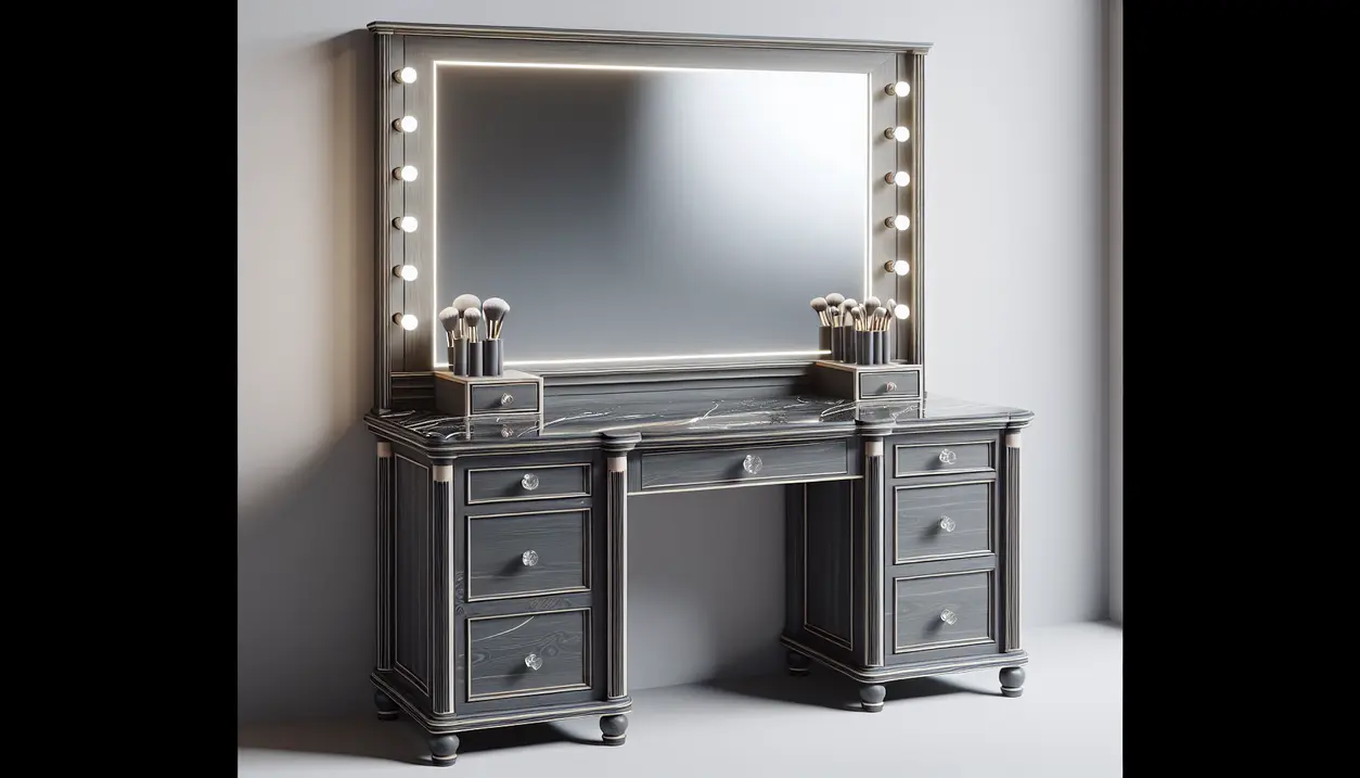Du forvandler et almindeligt IKEA-bord til en flot sminkestation ved at male det, beklæde overfladen med marmorvinyl og installere et spejl med belysning. Med nogle enkle DIY-tricks kan du skabe en praktisk og stilfuld makeup-station med masser af opbevaringsplads til en brøkdel af prisen på et færdigt sminkebord.