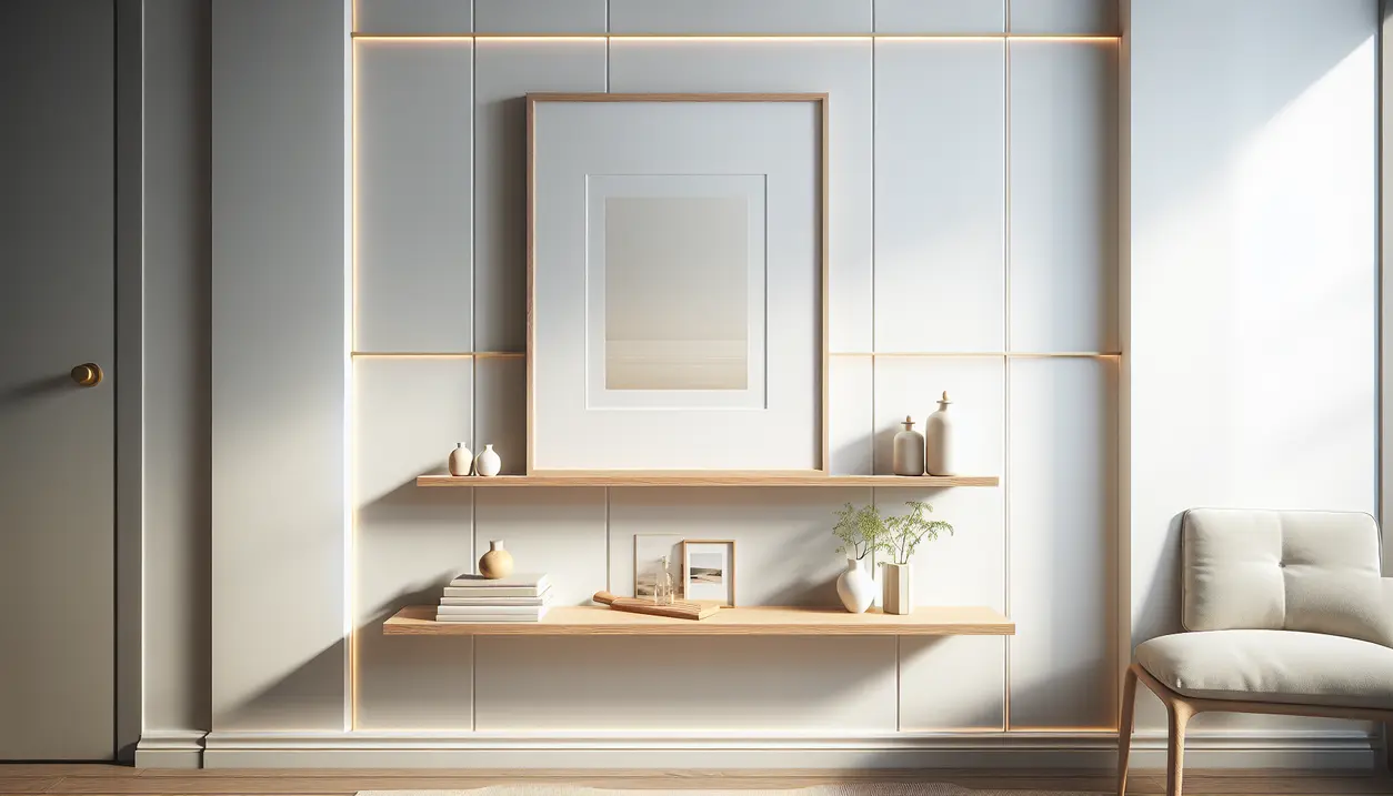 For en mere dramatisk effekt kan du bruge hylderne som væglys ved at placere dem strategisk med LED-lys bag. Dette skaber interessante skyggeeffekter og fungerer som både funktionel og dekorativ belysning.