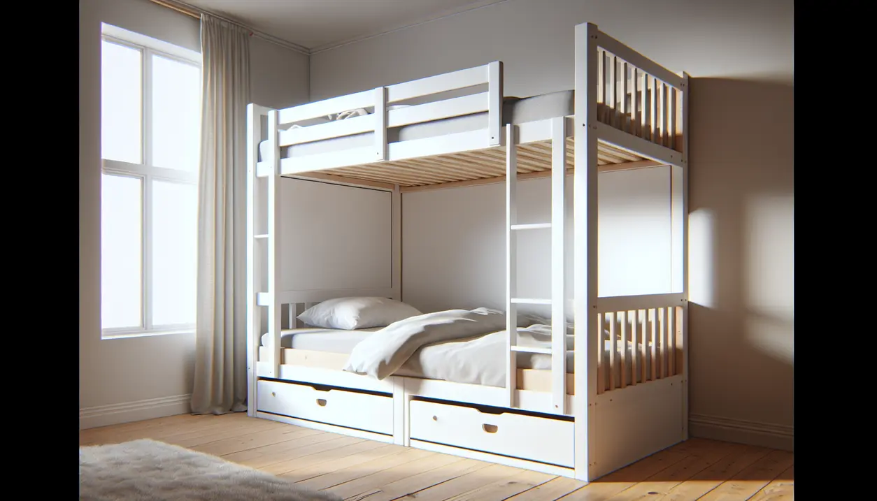 Du bygger en IKEA KURA-seng med skuffer og sengehest ved at kombinere to sæt reversible senge og tilføje underkøje-skuffer for ekstra opbevaring. Dette hack skaber mere plads til legetøj som LEGO og trætog under sengen, samtidig med at sikkerheden forbedres med en tilpasset sengehest.