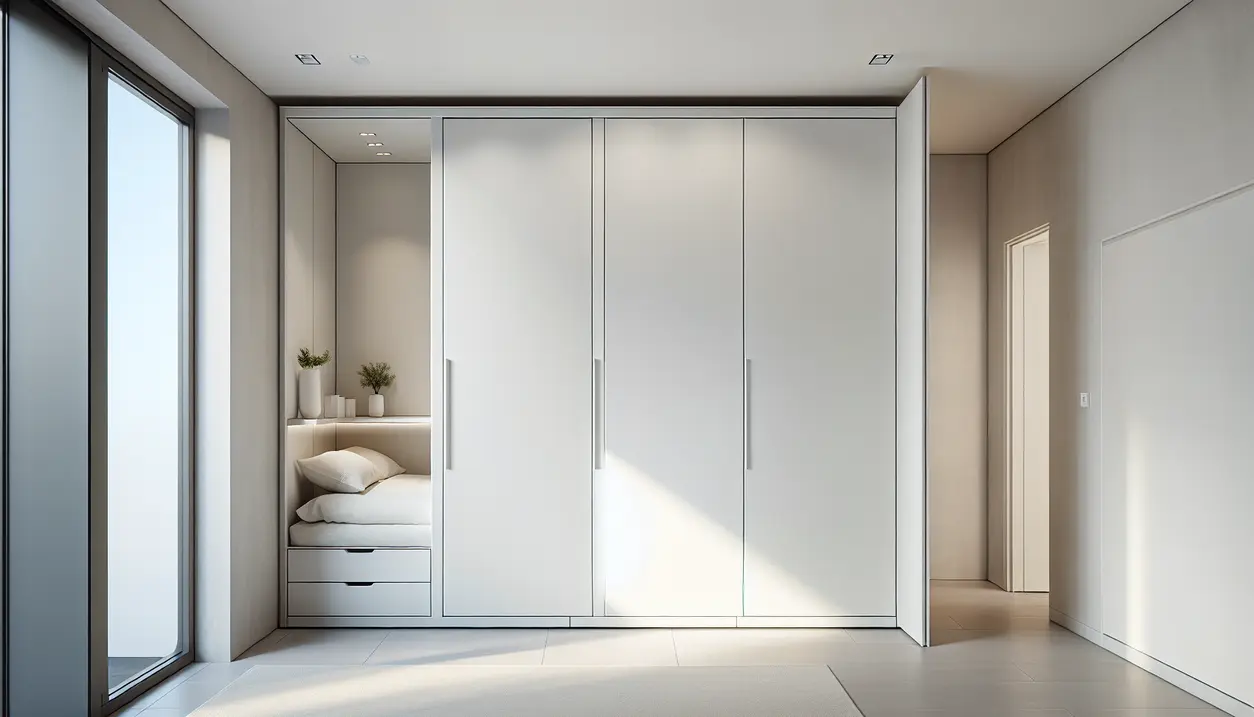 Du bygger en skjult Murphy-seng i IKEA PAX-skabe ved at montere et Murphy-seng-sæt direkte på væggen og bruge to PAX-garderobeskabe som dekorativ indbygning. Denne løsning giver dig både en funktionel gæsteseng og opbevaringsplads, samtidig med at sengen kan skjules helt væk, når den ikke er i brug.