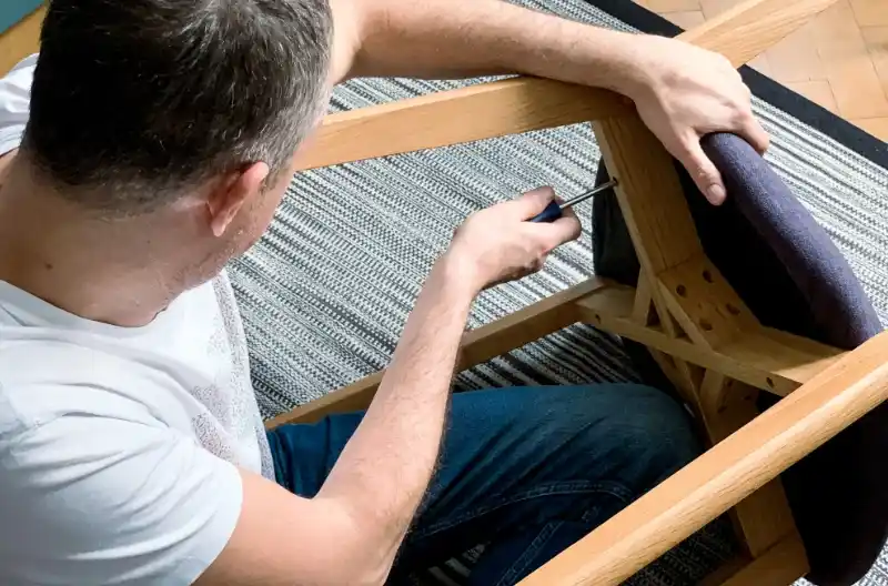 Hvis skruerne i stolen bliver ved med at falde ud, skal du undersøge, om hullerne er for store? Er det den forkerte skruetype eller størrelse? Er træet beskadiget? Hvis hullerne er for store, kan du bruge træplugger. Er træet beskadiget, skal det udskiftes, det samme gælder skruer af forkert størrelse eller type. Du kan også bruge lim, som kan hjælpe med at holde skruerne på plads.