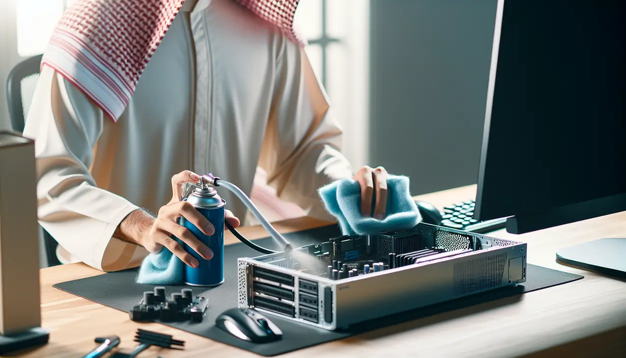 Opbevar komprimeret luft, mikrofiberklude og antistatisk udstyr et tørt og støvfrit sted, helst i en lukket beholder eller skuffe. Undgå høj varme og direkte sollys, især for dåser med trykluft, da trykket kan ændres.