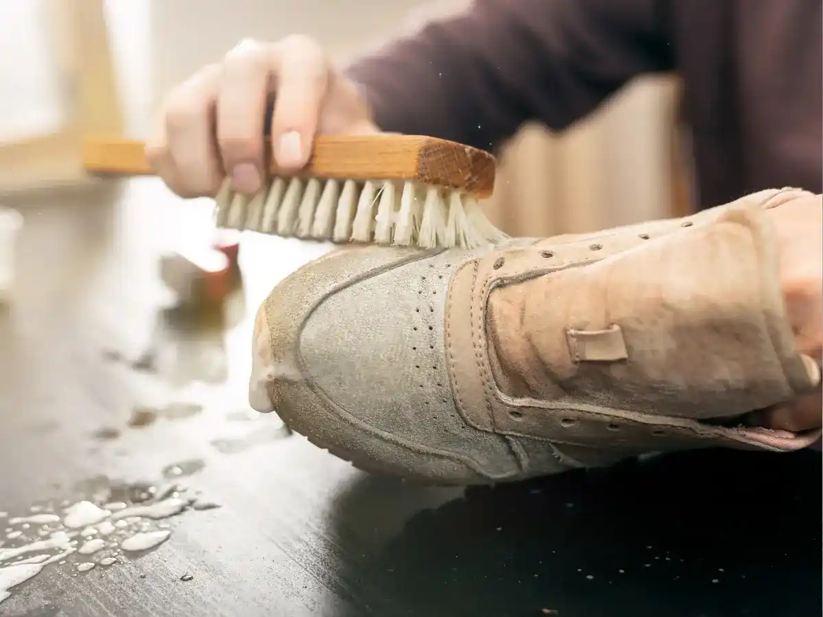 Du bør anvende en ruskindsbørste beregnet til formålet. Det er fremstillet til at løsne snavs fra overfladen på ruskindet uden at beskadige det.