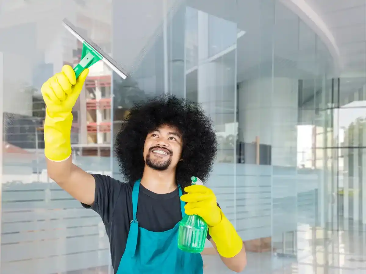 Jobbet som vinduespudser omfatter rengøring, polering, fjernelse af skidt, og arbejde med forskelligt værktøj for at rengøre vinduer på forskellige steder.