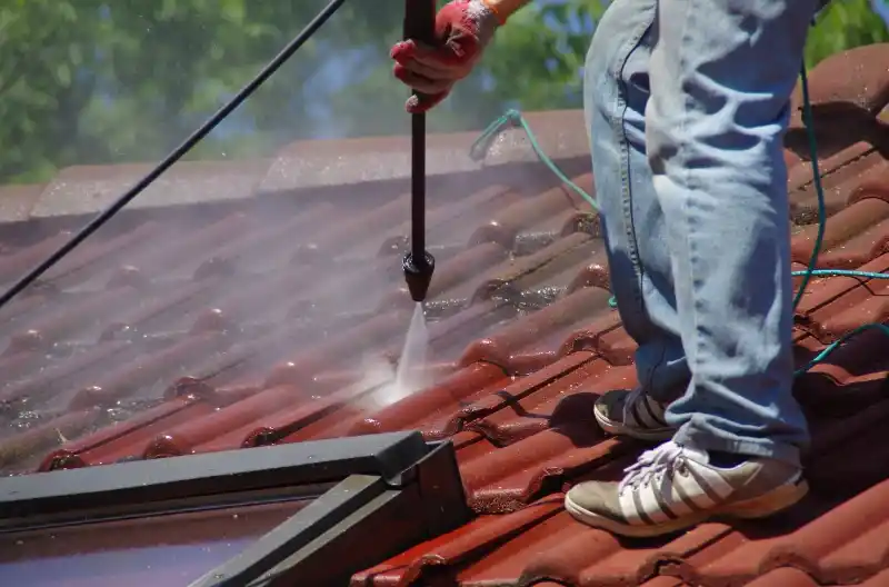 De fleste tage kan tage skade af højtryksrensning, så det er bedre at bruge en børste eller kost.